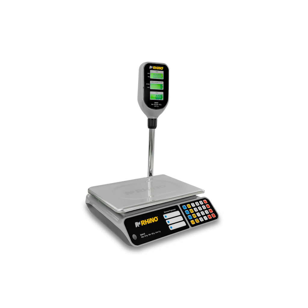 La báscula Rhino BAR-8T está diseñada para agilizar tus ventas gracias a sus funciones tipo caja registradora: calcula cambio, suma artículos por kilo o por pieza y elimina la necesidad de usar calculadora. Ideal para tiendas, abarrotes, fruterías, tortillerías y más.