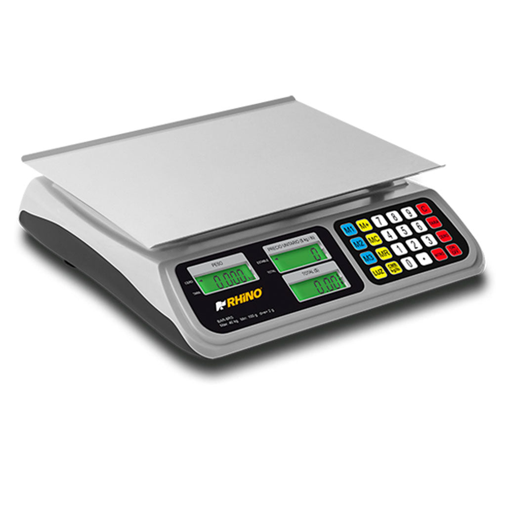 La bascula Rhino BAR-8RS está diseñada para negocios que buscan el mejor rendimiento en la categoría de báscula 20kg y báscula comercial digital.