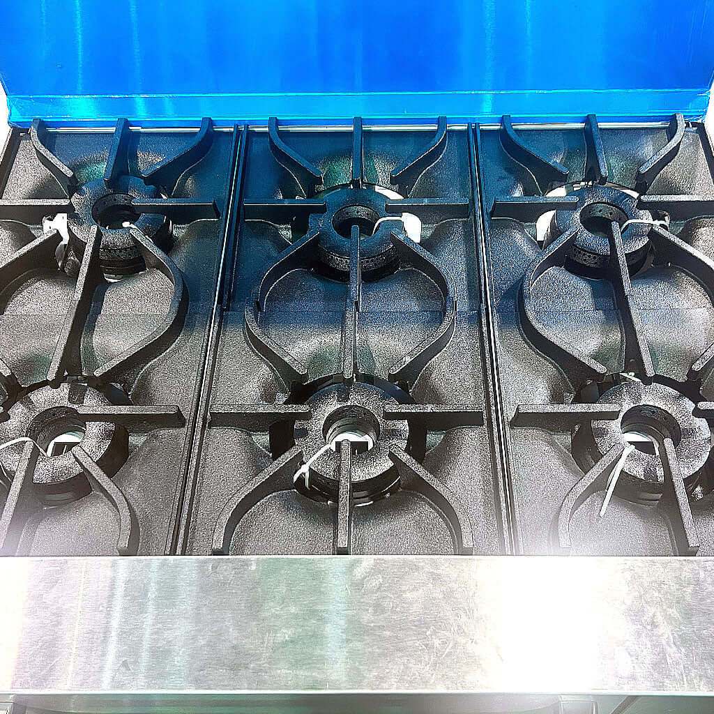 - Quemadores: 6 de 28,000 BTU/H con pilotos individuales