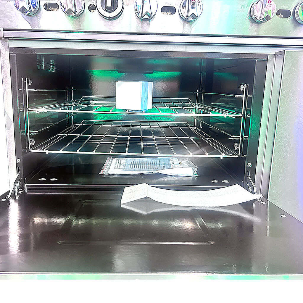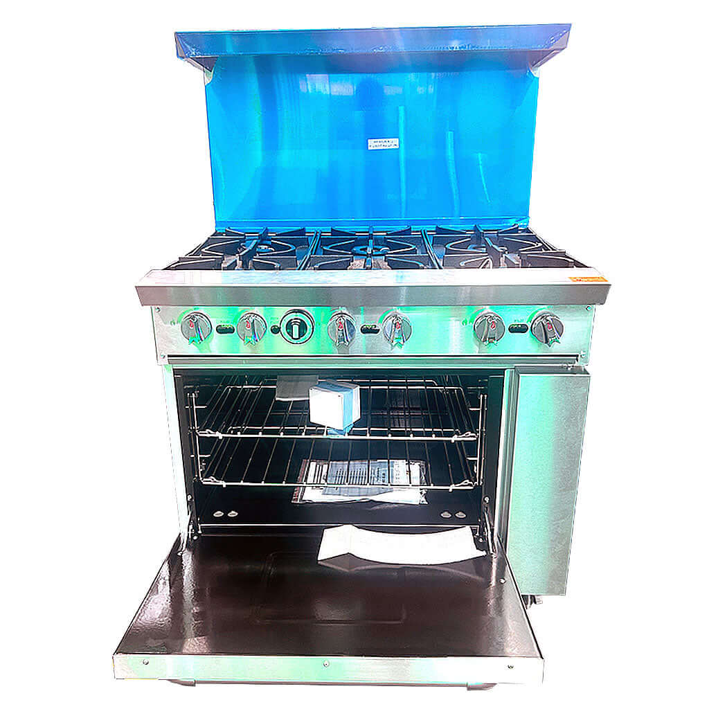 Fabricada en acero inoxidable SS430 , esta estufa industrial está equipada con 6 quemadores de 28,000 BTU/H , cada uno con piloto independiente para un encendido rápido y seguro. Su horno grande con quemador de 35,000 BTU/H e interior porcelanizado ofrece cocción uniforme y fácil limpieza, optimizando tiempo y energía en cada jornada.