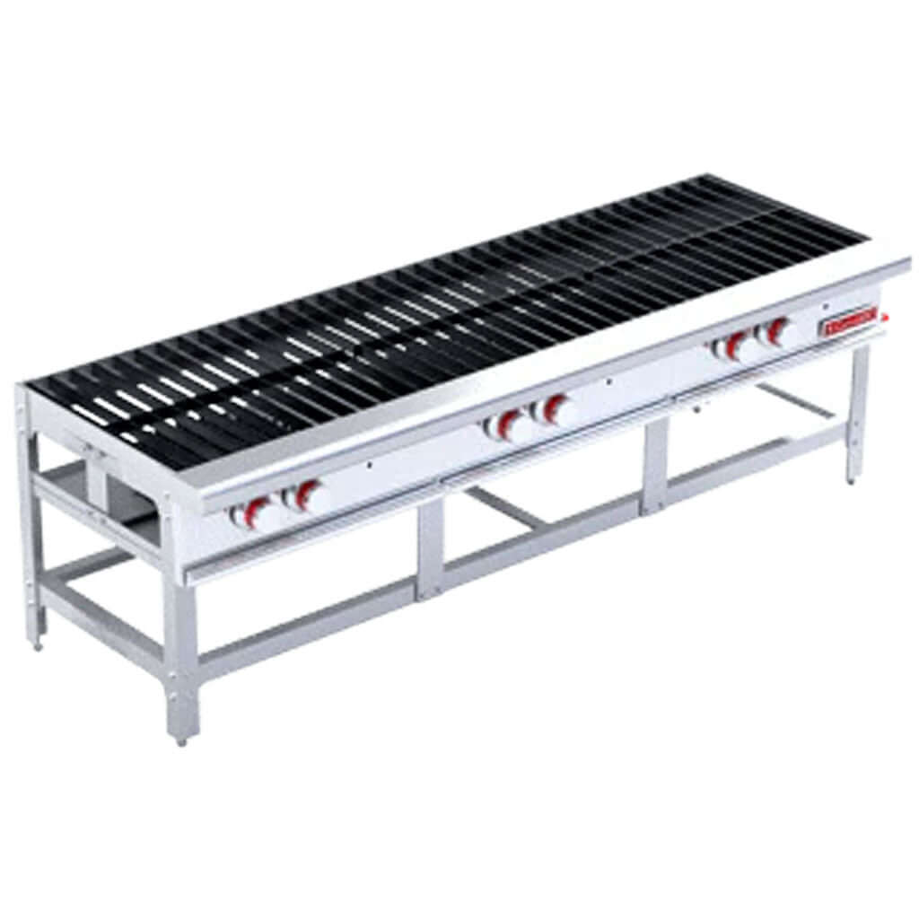 Las parrillas superiores de hierro fundido soportan peso y temperatura de forma consistente, reduciendo movimientos de recipientes grandes durante el servicio.