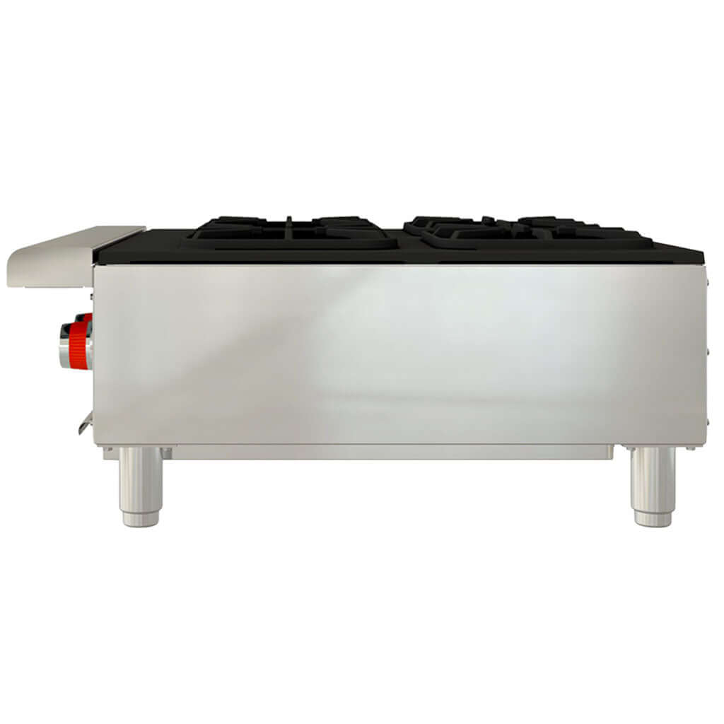 Equipada con 4 quemadores octagonales de hierro fundido de 24,000 BTU/hr cada uno, esta parrilla industrial de gas entrega una flama robusta para sellar, hervir o saltear con rapidez, incluso con carga alta de producción.