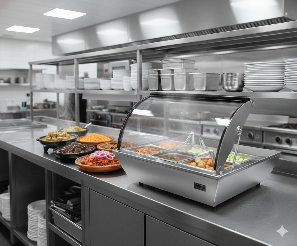 Mantén tus platillos calientes y listos para servir con la vitrina caliente Migsa